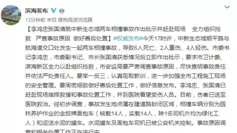 天津市濱海新區(qū)政府官方微博消息,昨日(11月1日) 17時許,中新生態(tài)城順平路與航海道交口處發(fā)生一起兩車相撞事故,導致6人死亡、2人重傷、4人輕傷。