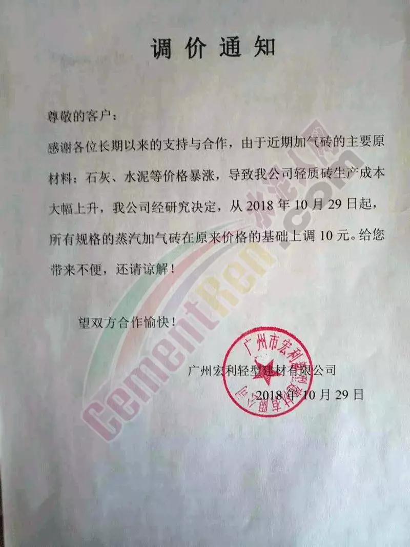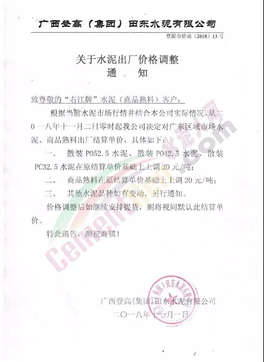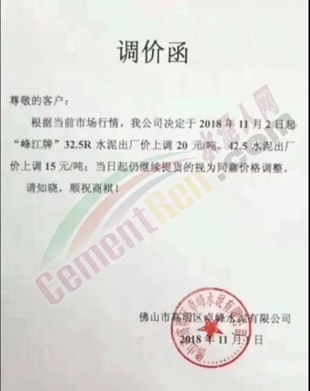 華南區(qū)域廣東、廣西區(qū)域水泥企業(yè)漲價通知函