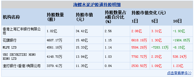 11月01日海螺水泥滬股通持股明細(xì)如下:
