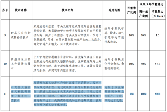 該技術(shù)適應(yīng)于水泥窯預(yù)熱預(yù)分解系統(tǒng)提產(chǎn)、節(jié)能、降耗技術(shù)改造??梢蕴岣?a href="http://m.ifaga.cn/tag/3633.html" target="_blank" class="keylink">熟料產(chǎn)量 10~25%;提高熟料強(qiáng)度 1.0~3.5MPa;降低燒成煤耗 2.9~4.5kgce/t;降低綜合電耗 3.5~5.0kW·h/t;降低廢氣中 NOx含量 100~150ppm。預(yù)計(jì)未來 5 年,推廣應(yīng)用比例可達(dá)到 10%,可形成節(jié)能52.61 萬 tce/a,減排 CO2 136.79 萬 t/a。