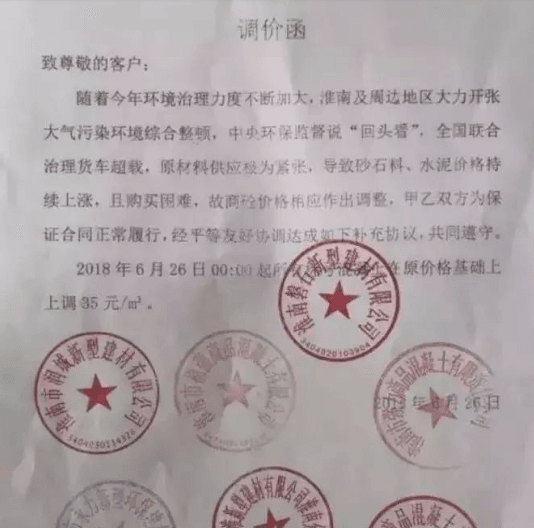 淮南,安徽省下轄地級市,位于安徽省中北部,地處長江三角洲腹地,淮河之濱,素有“中州咽喉,江南屏障”之稱,是沿淮城市群的重要節(jié)點,合肥都市圈核心城市。即使有這樣的優(yōu)越地理條件,在中央環(huán)保監(jiān)督下,全國聯(lián)合治理貨車超載中,當?shù)厣笆?、水泥價格依然持續(xù)上漲,且購買困難,當?shù)仨牌鬄榱吮苊鈵盒愿偁?,保證混凝土質(zhì)量,所有混凝土在原價格基礎上上調(diào)35元/方。