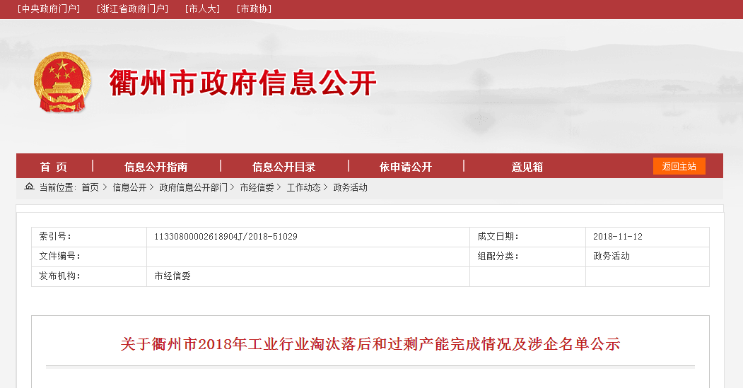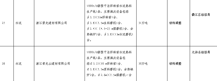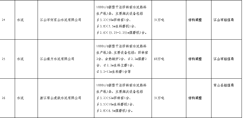 近日,浙江衢州市政府網(wǎng)站發(fā)布了關(guān)于衢州市2018年工業(yè)行業(yè)淘汰落后和過剩產(chǎn)能完成情況及涉企名單公示。公示時間為2018年11月12日至11月19日。 其中,水泥行業(yè):江山市何家山水泥有限公司、江山南方水泥有限公司、浙江常山虎躍水泥有限公司、浙江豪龍建材有限公司、浙江青龍山建材有限公司5家企業(yè)共183萬噸產(chǎn)能被列入名單。