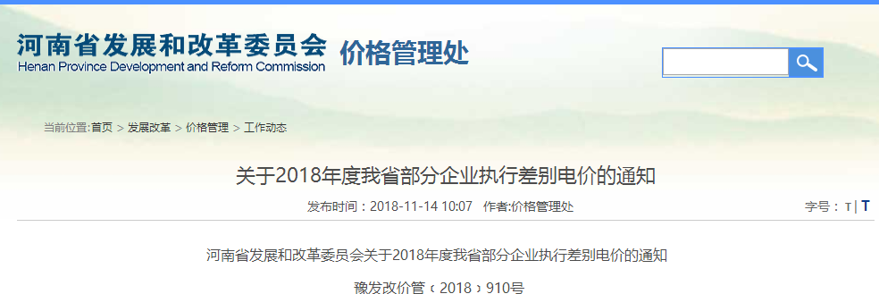 五、各地價(jià)格主管部門要會(huì)同有關(guān)部門按照省政府辦公廳《關(guān)于完善差別化電價(jià)政策的通知》(豫政辦明電〔2018〕99號(hào))等文件要求,加強(qiáng)對(duì)差別化電價(jià)的核查、執(zhí)行和監(jiān)督檢查,確保差別化電價(jià)政策落實(shí)到位。省電力公司要將本次差別電價(jià)執(zhí)行情況于2019年2月底前報(bào)送我委(價(jià)管處)。