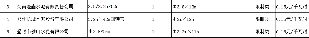 用電不加價(jià)水泥企業(yè):鄭州煤炭工業(yè)集團(tuán)龍力水泥有限責(zé)任公司、天瑞集團(tuán)鄭州水泥有限公司、中國長(zhǎng)城鋁業(yè)有限公司水泥廠、登封中聯(lián)登電水泥有限公司、天瑞新登鄭州水泥有限公司、登封市嵩基水泥有限公司、登封市宏昌水泥有限公司、登電集團(tuán)水泥有限公司、鄭州順寶水泥股份有限公司、鄭州永華水泥有限公司、新鄭市恒發(fā)水泥廠、河南雙龍建材有限公司。