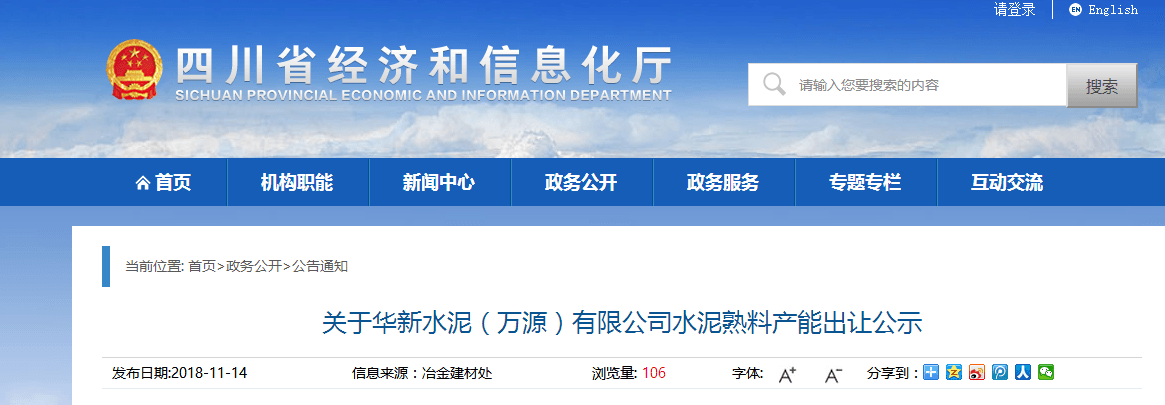 按照《國(guó)務(wù)院關(guān)于化解產(chǎn)能嚴(yán)重過剩矛盾的指導(dǎo)意見》(國(guó)發(fā)〔2013〕41號(hào))、《國(guó)務(wù)院辦公廳關(guān)于促進(jìn)建材工業(yè)穩(wěn)增長(zhǎng)調(diào)結(jié)構(gòu)增效益的指導(dǎo)意見》(國(guó)辦發(fā)〔2016〕34號(hào))、《工業(yè)和信息化部關(guān)于印發(fā)鋼鐵水泥玻璃行業(yè)產(chǎn)能置換實(shí)施辦法的通知》(工信部產(chǎn)業(yè)〔2017〕337號(hào))精神,現(xiàn)將華新水泥(萬源)有限公司水泥熟料產(chǎn)能異地置換情況進(jìn)行公示,歡迎社會(huì)公眾進(jìn)行監(jiān)督。公示期為2018年11月14日至11月18日,公示期5天。如有異議,請(qǐng)于公示期內(nèi)向我廳冶金建材處反饋。