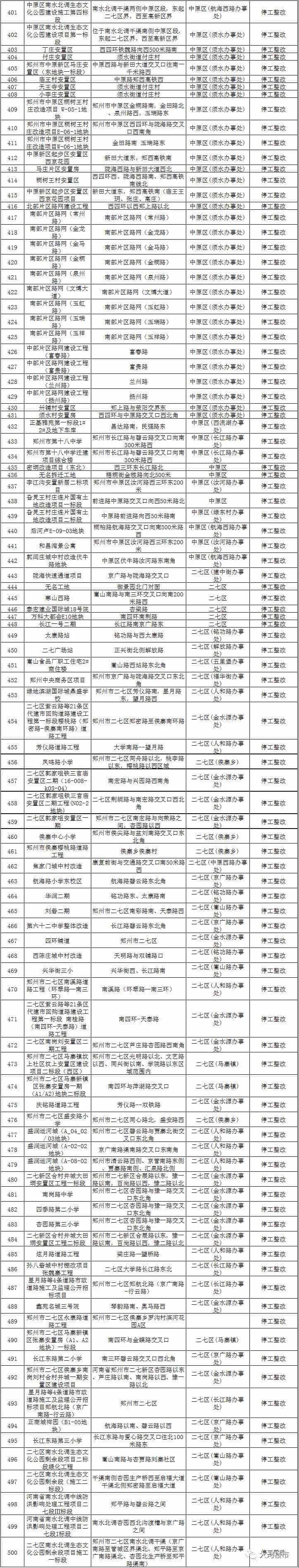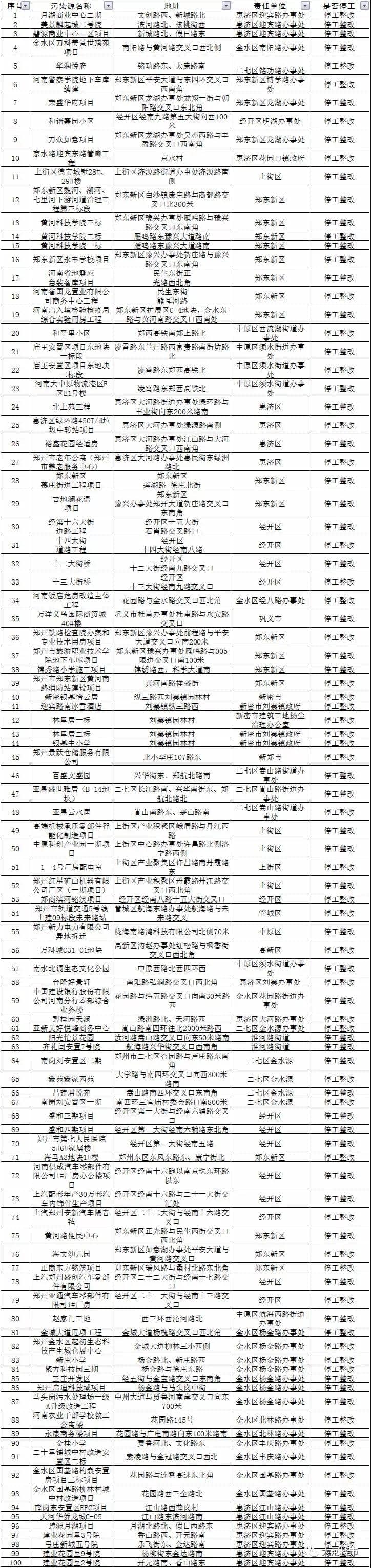 另據報道,由于未落實"八個百分之百"要求,鄭州市910個工地被停工。11月14日,鄭州市環(huán)保局公布910個被停工工地名單,以及存在的問題。