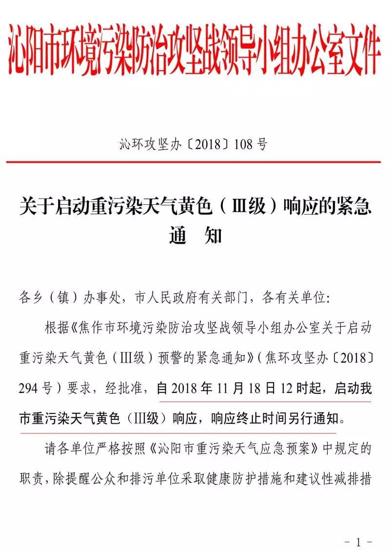 日前,河南沁陽市環(huán)境污染防治攻堅戰(zhàn)領導小組辦公室發(fā)布《關于啟動重污染天氣黃色(Ⅲ級)響應的緊急通知》(沁環(huán)攻堅辦〔2018〕108 號)文件稱,根據(jù)《焦作市環(huán)境污染防治攻堅戰(zhàn)領導小組辦公室關于啟動重污染天氣黃色(Ⅲ級)預警的緊急通知》(焦環(huán)攻堅辦〔2018〕294 號)要求,經(jīng)批準,自 2018 年 11 月 18 日 12 時起,啟動沁陽市重污染天氣黃色(Ⅲ級)響應,響應終止時間另行通知。請各單位嚴格按照《沁陽市重污染天氣應急預案》中規(guī)定的職責,除提醒公眾和排污單位采取健康防護措施和建議性減排措施外,還要結合新修訂的 2018 年重污染天氣應急減排措施項目清單,嚴格落實Ⅲ級響應措施。各鄉(xiāng)(鎮(zhèn))辦事處和有關部門要督導落實以下措施,確保全社會 SO2、NOX、PM、VOCs 減排比例均達到 10%以上: