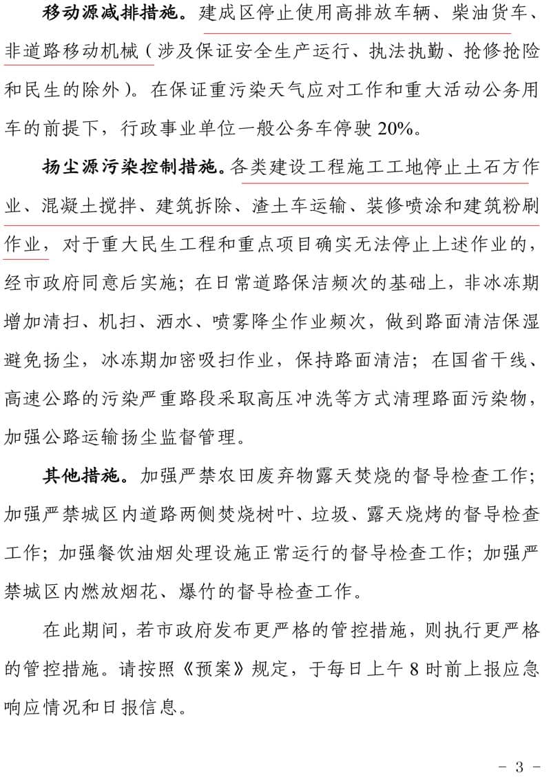 移動源減排措施。建成區(qū)停止使用高排放車輛、柴油貨車、非道路移動機械等。