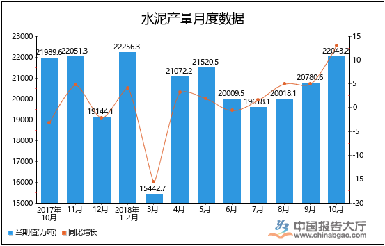 2018年1-10月全國(guó)水泥產(chǎn)量分月數(shù)據(jù)