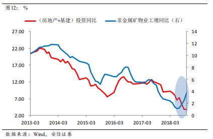 但隨后我們看到,鋼鐵價(jià)格和生產(chǎn)都在明顯走強(qiáng),這意味著需求是較強(qiáng)的;而另一方面基建投資在明顯走弱,這可能意味著房地產(chǎn)投資可能要好于預(yù)期。一個(gè)可能的解釋是,房地產(chǎn)企業(yè)2018年資金緊張,但又想加大土地購(gòu)置,因此房企拿地后,趕緊開(kāi)工至總投資額的25%之后馬上辦理預(yù)售證后開(kāi)盤(pán)銷(xiāo)售,盡快回款,但之后緩慢施工。一般來(lái)說(shuō),房屋總投資25%的進(jìn)程都已經(jīng)建至地面以上,打基礎(chǔ)的部分大概要消耗鋼筋水泥的一半左右,這使得水泥包括鋼鐵的消耗量大增。