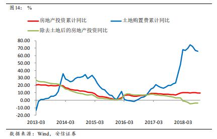 第三個(gè)解釋或許更為重要。2018年以來(lái)市場(chǎng)一致的認(rèn)識(shí)是,房地產(chǎn)企業(yè)加大了土地購(gòu)置,土地購(gòu)置費(fèi)大幅增長(zhǎng);另一方面,今年的房地產(chǎn)投資數(shù)據(jù)一直在10%左右波動(dòng),因此倒算出來(lái)的包括建安等在內(nèi)的其他部分投資同比出現(xiàn)負(fù)增長(zhǎng)。所以,市場(chǎng)一度相信剔除土地后的實(shí)際投資并不樂(lè)觀。