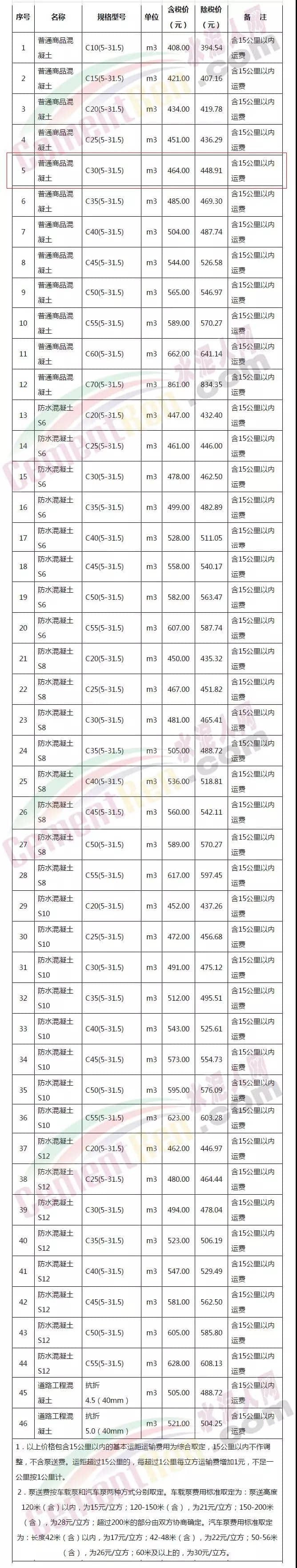 從武漢混凝土協(xié)會近期發(fā)布的《武漢地區(qū)2018年11月16日至11月30日綜合信息價(jià)》來看市場主流42.5級散裝普通硅酸鹽水泥價(jià)格已達(dá)572.22元/噸(含稅)。32.5級袋裝礦渣硅酸鹽水泥已經(jīng)達(dá)564.94元/噸。C30(5-31.5)普通商品混凝土信息價(jià)已達(dá)464元/立方米。