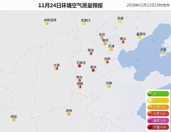 預(yù)計(jì)11月24日~27日,擴(kuò)散條件持續(xù)轉(zhuǎn)差,河北省中南部和東部地區(qū)可能出現(xiàn)中度至重度污染過(guò)程。
