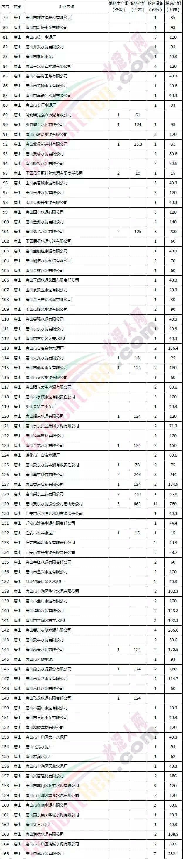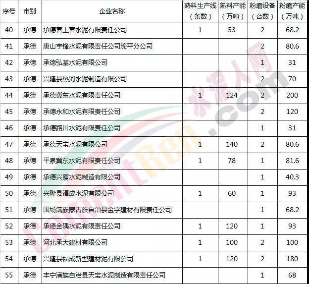 河北省部分水泥企業(yè)名單