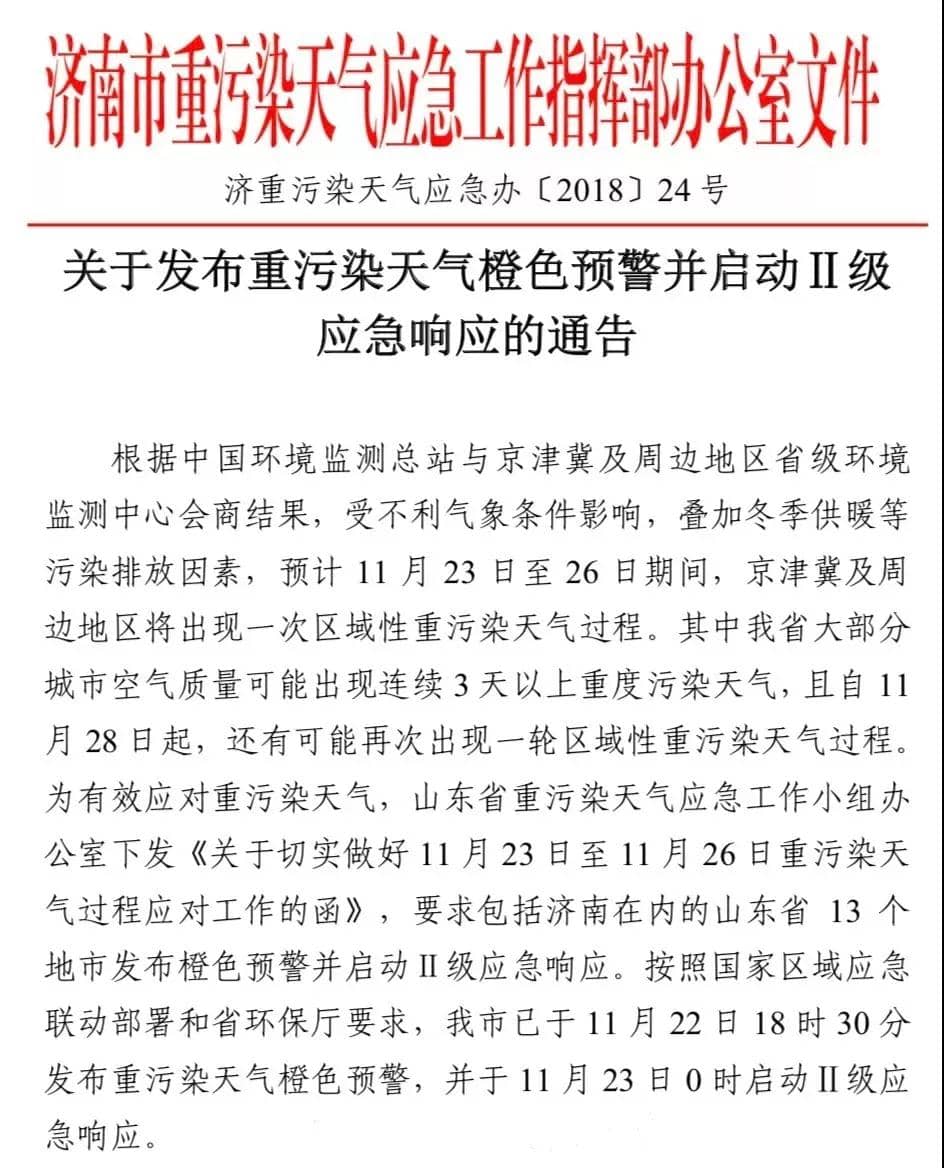 河北省大氣辦11月20日發(fā)出通知,要求區(qū)域一、區(qū)域二城市于11月22日18時(shí)發(fā)布重污染天氣橙色預(yù)警,啟動(dòng)Ⅱ級(jí)應(yīng)急響應(yīng)。