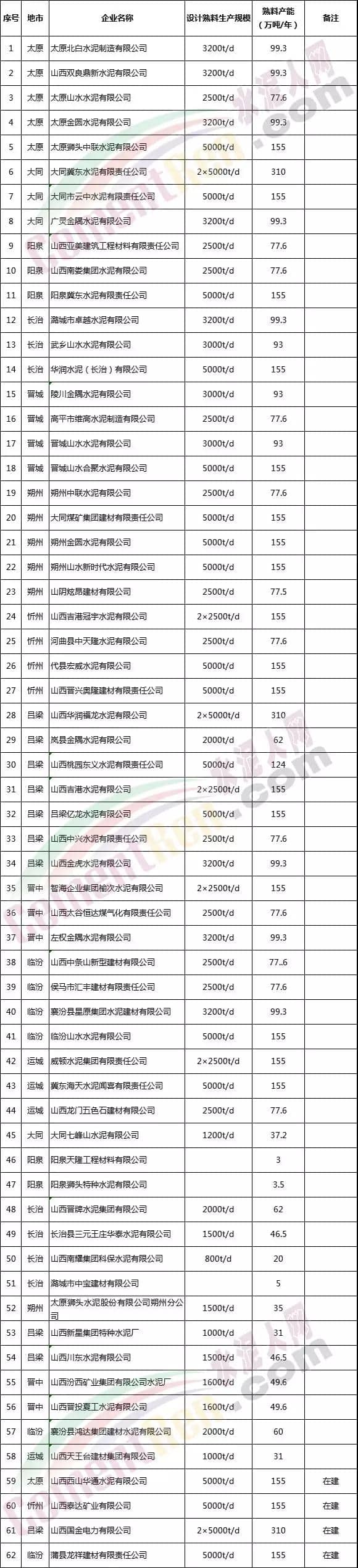 山西部分水泥企業(yè)名單