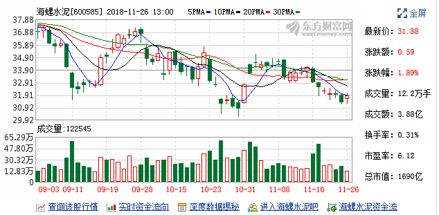 母公司重組步伐明確,刺激海螺水泥(00914)(滬:600585)A股股價升近2%,暫報31.89元人民幣。