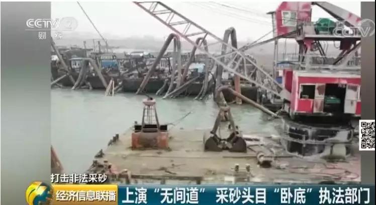 央視記者 石云松:在我們停靠的這艘船下面,曾經(jīng)有一個(gè)河灘,但是現(xiàn)在這個(gè)河灘,因?yàn)榀偪癖I采,河灘已經(jīng)完全消失不見了。