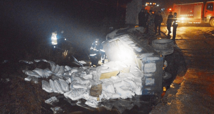 12月2日,泰安市新泰禹村鎮(zhèn)東白家溝村,一輛小型貨車裝載著水泥側(cè)翻入河溝內(nèi),駕駛員被卡在車內(nèi)且河水漫過(guò)了大半個(gè)身子,一直不停的呼喊救命。路過(guò)行人撥打了消防報(bào)警電話,泰安市消防支隊(duì)作戰(zhàn)指揮中心接到報(bào)警,立即調(diào)派新汶中隊(duì)迅速趕往現(xiàn)場(chǎng)實(shí)施救援。