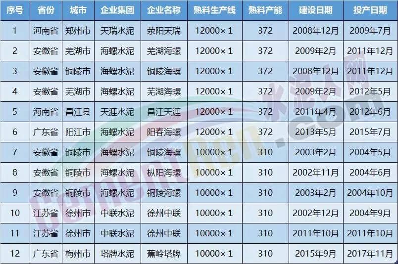 中國熟料萬噸線產(chǎn)能統(tǒng)計(jì)表