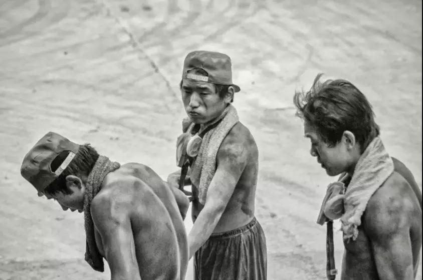 ▲2005年8月,從一個(gè)個(gè)裸身上的粉塵和口鼻上的防護(hù)罩,你就會(huì)想象到勞動(dòng)強(qiáng)度和環(huán)境對(duì)他們的侵蝕。