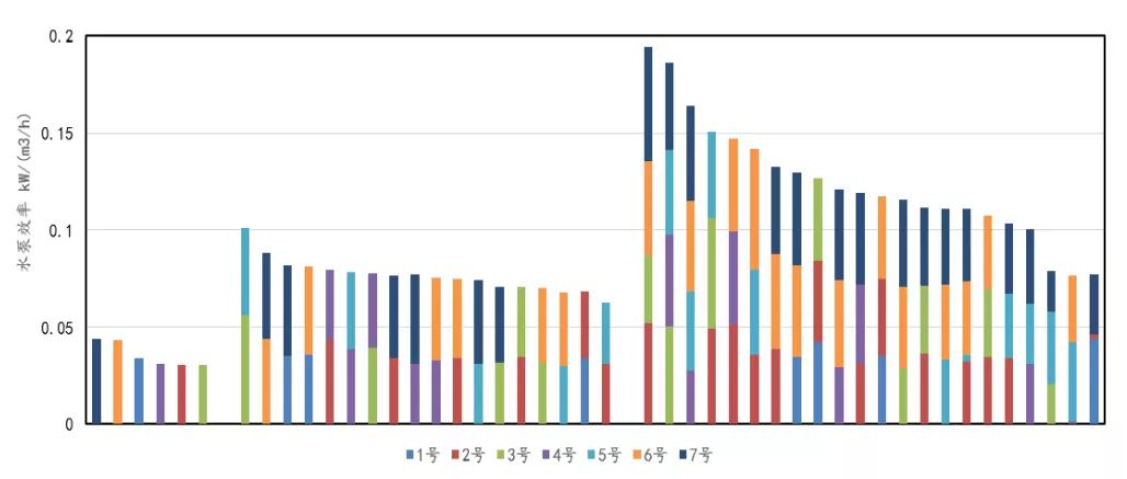 圖2 基于數(shù)據(jù)分析的各水泵及組合效率分析
