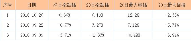 東方財富Choice數(shù)據(jù)顯示,冀東水泥股價前一次有效突破年線為2016年10月26日,當(dāng)日收盤價為10.66元。以該收盤價為支撐點位,自10月26日開始冀東水泥股價短期內(nèi)形成向上的動能,于2016年10月27日達到區(qū)間高點,區(qū)間最大漲幅為2.63%,該日為有效突破年線后第2天。