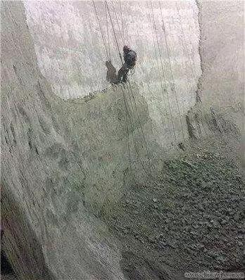3. 清庫(kù)就是因?yàn)樗懒弦徊讲椒e累而來(lái),事實(shí)上在沒有徹底堵死的時(shí)候,我們的水泥庫(kù)都是嚴(yán)重帶病運(yùn)行的。等到必須清庫(kù)時(shí),無(wú)論是人工方式還是機(jī)器方式,減壓錐的存在反而變成了巨大的料路疏通障礙;因?yàn)榇罅克懒隙鄶?shù)處于板結(jié)硬化狀態(tài),清理下來(lái)的往往是流動(dòng)性極差的塊粉混合料,其疏通死角有時(shí)不得不靠人加以處理,如圖5所示,在高位堆積受力極不穩(wěn)定的庫(kù)內(nèi)環(huán)境,這正是誘發(fā)重大傷亡事故的原因所在。