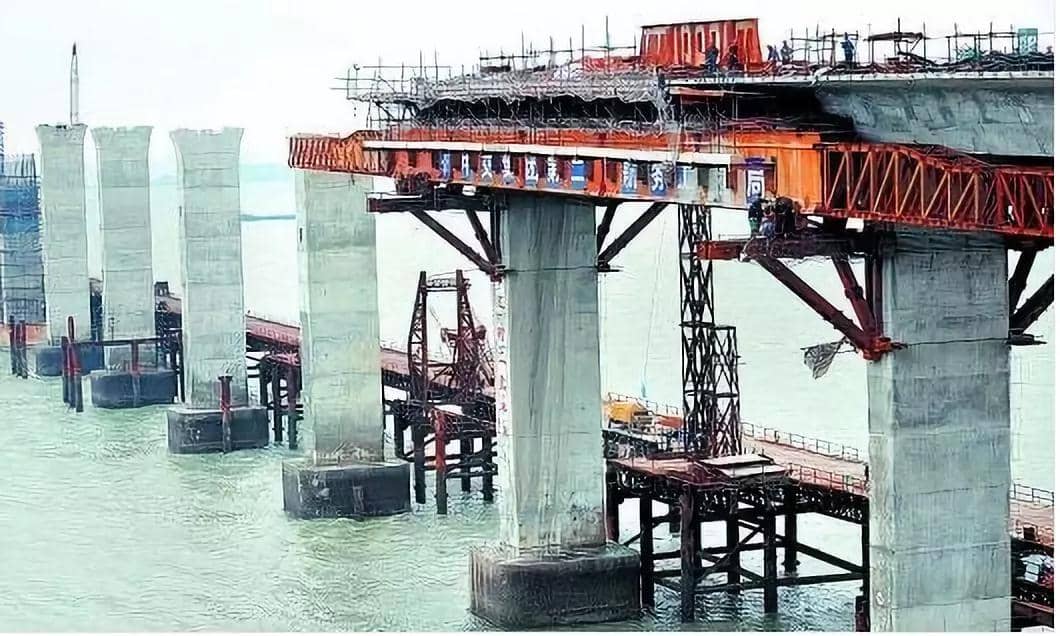 這座大橋最難的部分,也是也是部分深海的施工,所以在建造的時(shí)候,為了保證底部的質(zhì)量,我們將240噸的水泥傾瀉到海水當(dāng)中,為了保證最大的加固,我們在海底打入了上百根鋼柱,這些鋼柱加起來也有三十噸。