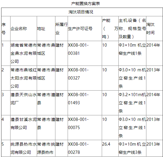 注:2014年常德市制定該項目產(chǎn)能置換方案時,國家尚未出臺具體的產(chǎn)能置換辦法,即《工業(yè)和信息化部關(guān)于做好部分產(chǎn)能嚴(yán)重過剩行業(yè)產(chǎn)能置換工作的通知》(工信部產(chǎn)業(yè)〔2014〕296號)和《工業(yè)和信息化部關(guān)于印發(fā)部分產(chǎn)能嚴(yán)重過剩行業(yè)產(chǎn)能置換實施辦法的通知》(工信部產(chǎn)業(yè)〔2015〕127號),故按《國務(wù)院關(guān)于化解產(chǎn)能嚴(yán)重過剩矛盾的指導(dǎo)意見》(國發(fā)〔2013〕41號)精神進(jìn)行方案制定與確認(rèn)。