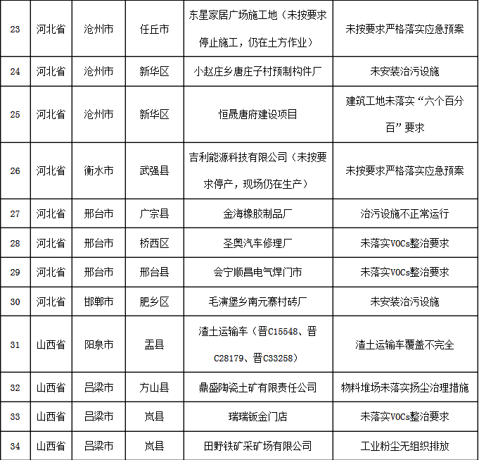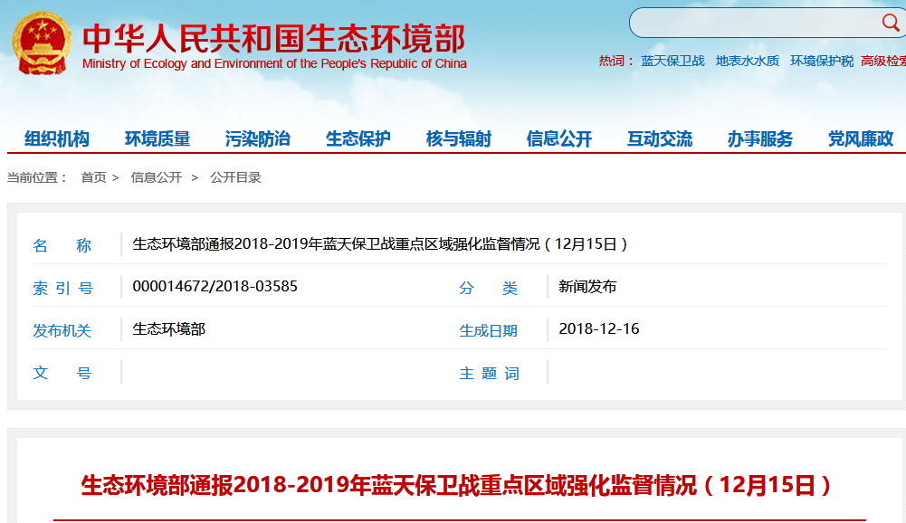 2018-2019年藍天保衛(wèi)戰(zhàn)重點區(qū)域強化監(jiān)督工作繼續(xù)開展,12月15日工作組發(fā)現涉氣環(huán)境問題71個,12月16日工作組發(fā)現未嚴格執(zhí)行重污染天氣應急響應問題16個(見附表)。