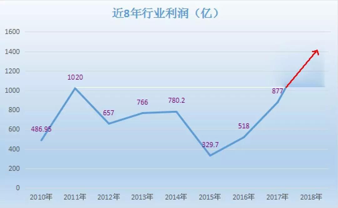 從上述11家水泥企業(yè)2018年前三季度利潤額及同比增長率來看,今年水泥行業(yè)的利潤額創(chuàng)新高是大概率事件,相關(guān)行業(yè)人士預(yù)測2018年水泥行業(yè)的利潤總額或?qū)?chuàng)造近8年來的新高,或?qū)⒏哌_1200億~1400億。