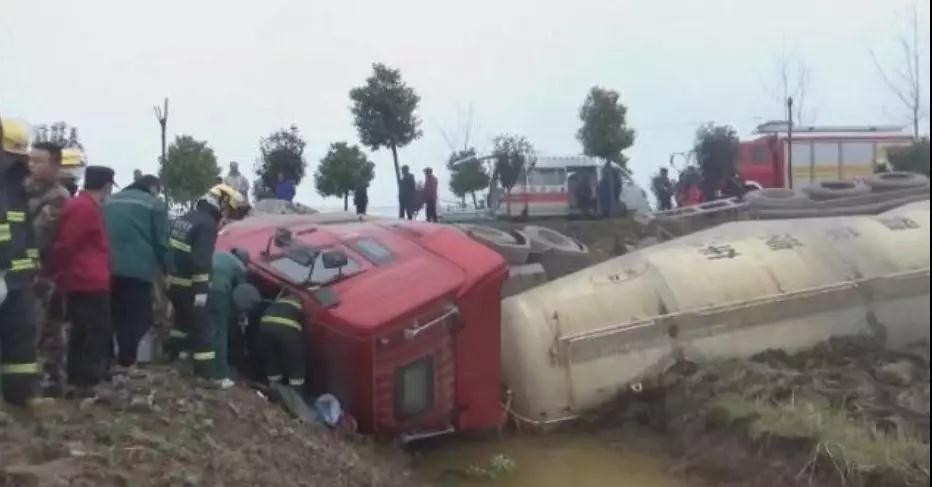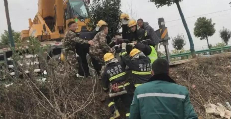 2018年12月20日13時許,湖北荊州洪湖市烏林鎮(zhèn)的鄉(xiāng)村公路上發(fā)生一起交通事故,一輛滿載40噸水泥的槽罐車側翻在路邊的溝內,車內一名中年司機被變形的駕駛室壓住無法動彈,經當?shù)叵?、交警、醫(yī)療、和群眾的共同努力將被困司機救出并送往醫(yī)院救治。