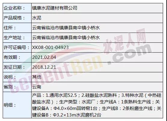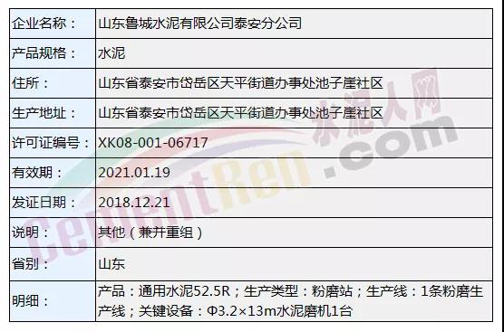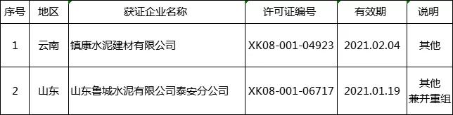 涉及其他項(xiàng)目核發(fā)生產(chǎn)許可證的共2家企業(yè)2個(gè)編號(hào)生產(chǎn)許可證。分別為山東魯城水泥有限公司泰安分公司和云南省鎮(zhèn)康水泥建材有限公司。詳情如下: