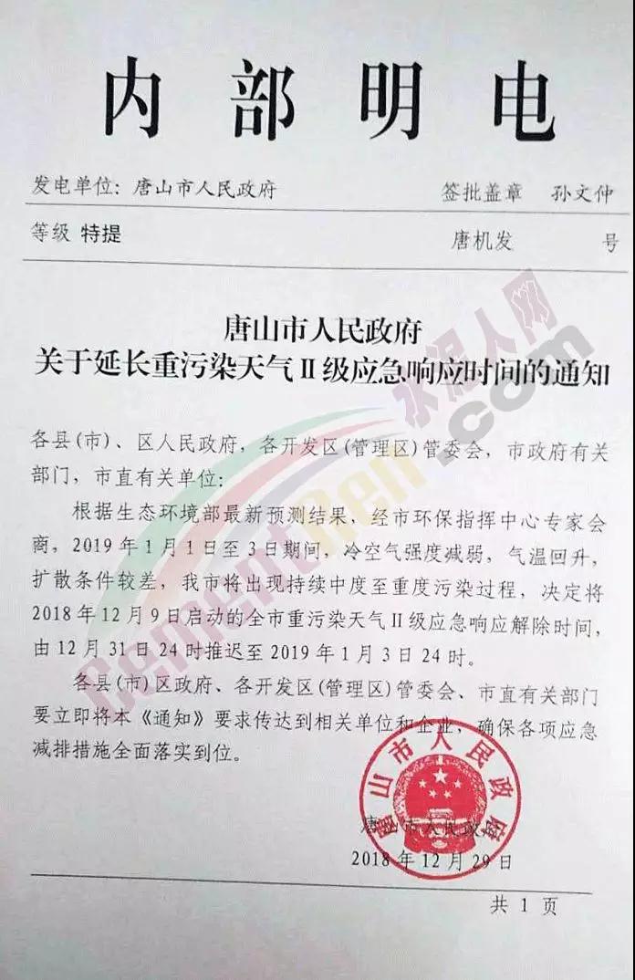 關(guān)于延長(zhǎng)重污染天氣Ⅱ級(jí)應(yīng)急響應(yīng)時(shí)間的通知