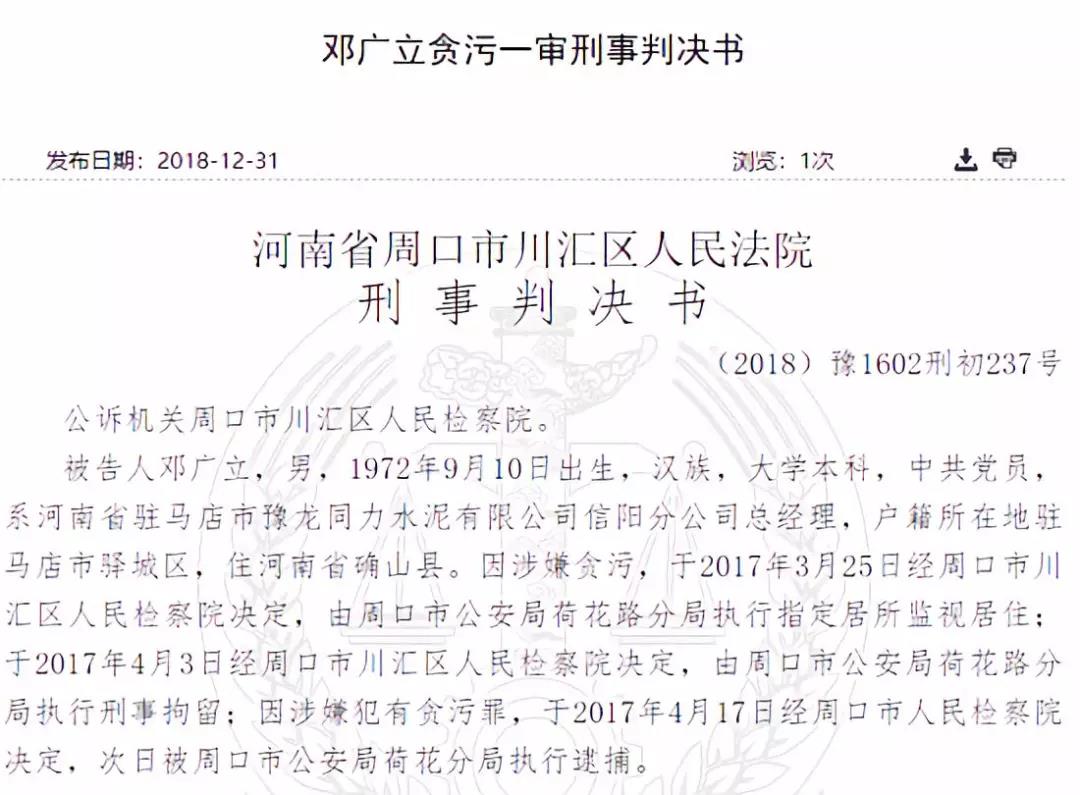 2017年3月25日,鄧廣立因涉嫌貪污,被指定居所監(jiān)視居住,2017年4月3日被刑事拘留。鄧廣立犯貪污罪,判處有期徒刑一年八個月,并處罰金人民幣十五萬元。非法所得12.78萬元應(yīng)當予以追繳,上繳國庫。