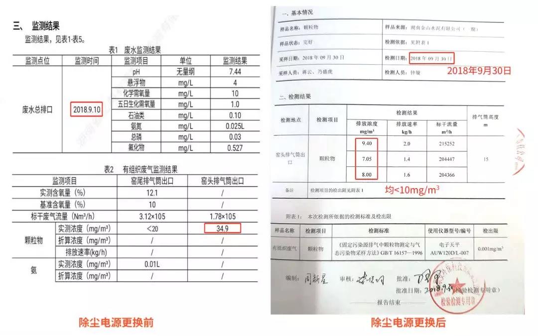眾多客戶(hù)的信賴(lài),一項(xiàng)又一項(xiàng)的超低排放改造成功案例,彰顯江蘇一品除塵電源技術(shù)的領(lǐng)先性及豐富的電除塵器改造經(jīng)驗(yàn),湖南衡陽(yáng)金山水泥2500t/d生產(chǎn)線窯頭通過(guò)將除塵電源更換,經(jīng)改造前后檢測(cè)對(duì)比,減排效果十分顯著!