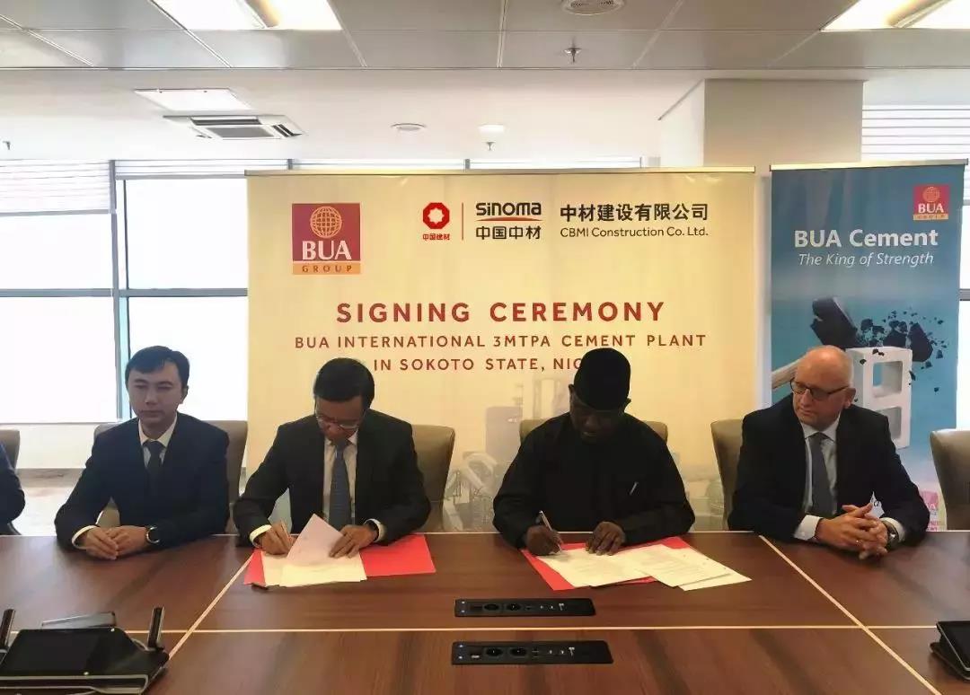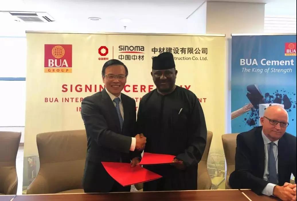 BUA集團(tuán)主席Mr.RABIU和中材建設(shè)有限公司執(zhí)行董事童來(lái)茍先生分別代表雙方在合同上簽字,BUA集團(tuán)水泥板塊首席運(yùn)營(yíng)官M(fèi)r. FINN與中材建設(shè)有限公司副總經(jīng)理李明見(jiàn)證了合同的簽約。