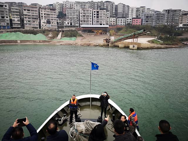 2019年1月8日,生態(tài)環(huán)境部現(xiàn)場(chǎng)核查組對(duì)重慶市萬(wàn)州區(qū)新田集鎮(zhèn)碼頭砂石侵占岸線問(wèn)題整改情況進(jìn)行現(xiàn)場(chǎng)核查。攝影/章軻