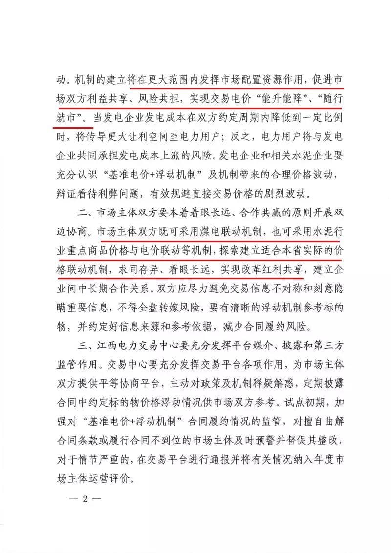 三、江西電力交易中心要充分發(fā)揮平臺(tái)媒介、披露和第三方監(jiān)管作用。交易中心要充分發(fā)揮交易平臺(tái)各項(xiàng)作用,為市場(chǎng)主體雙方提供平等協(xié)商平臺(tái),主動(dòng)對(duì)政策及機(jī)制釋疑解惑,定期披露合同中約定標(biāo)的物價(jià)格浮動(dòng)情況從市場(chǎng)雙方參考。試點(diǎn)初期,加強(qiáng)對(duì)"基準(zhǔn)電價(jià)+浮動(dòng)機(jī)制”合同履約情況的監(jiān)管,對(duì)擅自曲解合同條款或改造合同不到位的市場(chǎng)主體及時(shí)預(yù)警并督促其整改,對(duì)于情節(jié)嚴(yán)重的,在交易平臺(tái)進(jìn)行通報(bào)并將有關(guān)情況納入年度市場(chǎng)運(yùn)營(yíng)評(píng)價(jià)。文件原文如下