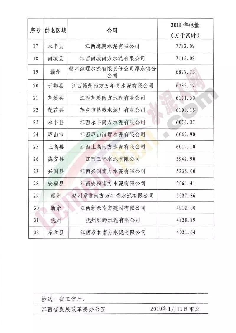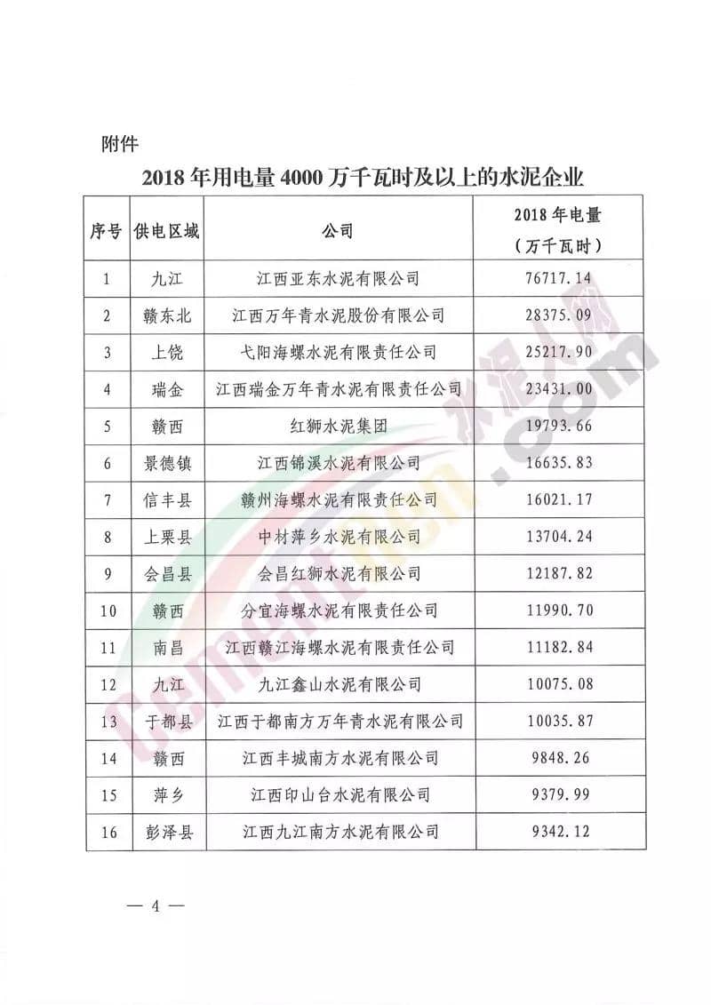 附:2018年用電量4000萬(wàn)千瓦時(shí)以上的水泥企業(yè)名單