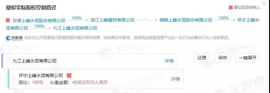 天眼查數(shù)據(jù)顯示,九江上峰水泥有限公司為懷寧上峰水泥公司全資控股子公司。企業(yè)在2018年3月28日,由九江市盤石水泥有限公司變更為九江上峰水泥有限公司。據(jù)水泥人網(wǎng)了解這家企業(yè)是懷寧上峰水泥以一元人民幣收購而來。