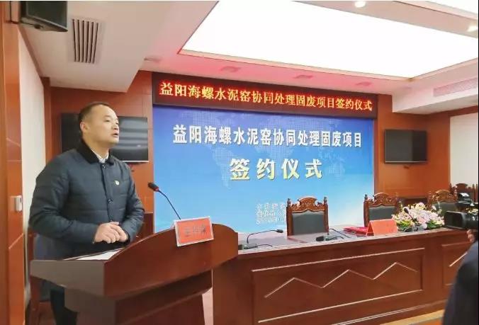 水泥人網(wǎng)消息:1月17日上午8點30分,益陽海螺水泥窯協(xié)同處理固廢項目簽約儀式在湖南省益陽市安化縣人大常委會議室舉行,安化縣2019年實現(xiàn)招商引資工作“開門紅”。安化縣委書記熊哲文出席簽約儀式并致辭??h委副書記、縣長肖義與中國海螺創(chuàng)業(yè)控股有限公司總經(jīng)理紀(jì)勤應(yīng)、湖南益陽海螺水泥有限責(zé)任公司總經(jīng)理馬偉簽訂三方合作協(xié)議。縣委副書記王新宇主持簽約儀式。縣委常委、常務(wù)副縣長鄒雄彬,副縣長胡能華出席并見證簽約。