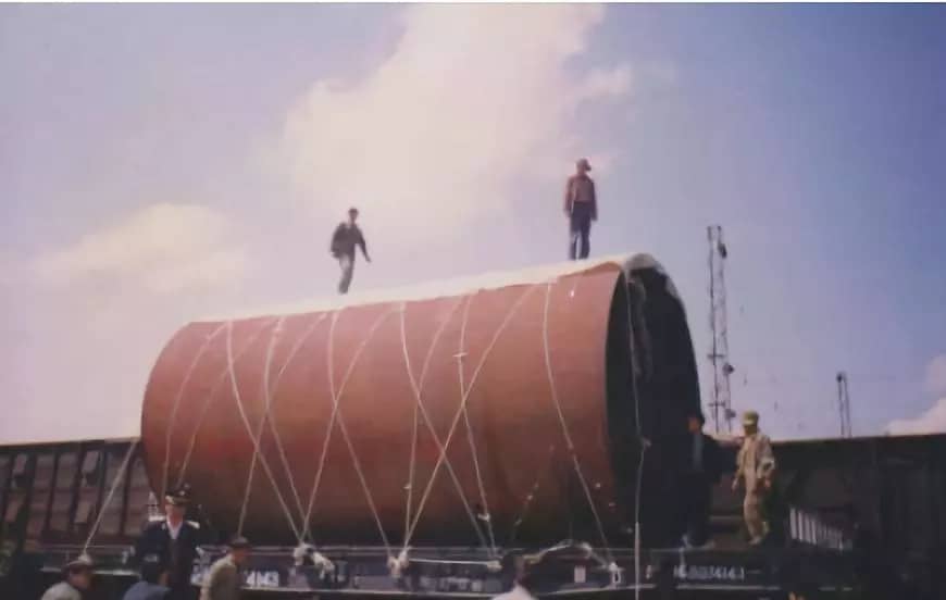 1998年,蒙西水泥公司三號濕法窯安裝現場