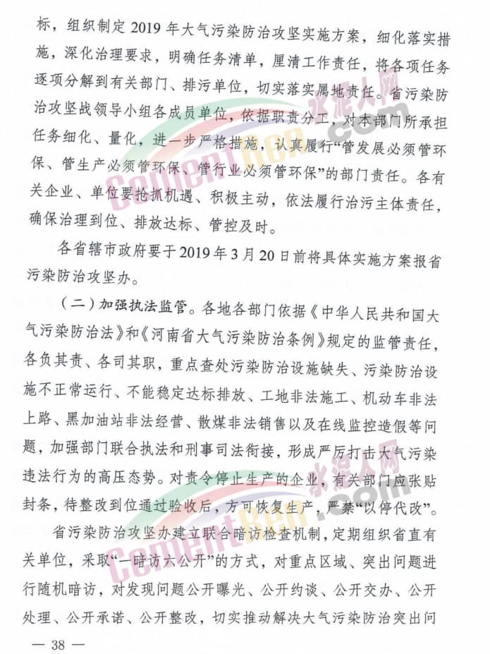 近日,河南省污染防治攻堅(jiān)戰(zhàn)領(lǐng)導(dǎo)小組辦公室發(fā)布《關(guān)于印發(fā)河南省2019年大氣污染防治攻堅(jiān)戰(zhàn)實(shí)施方案的通知》,該文件對(duì)于河南省水泥行業(yè)錯(cuò)峰生產(chǎn)及環(huán)保治理提出了史上最嚴(yán)的要求。