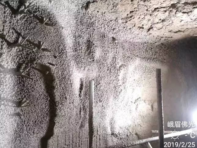 四川筠連西南水泥:2018年8月在前窯口下方直墻開始使用噴涂料,至2019年2月已使用約6個(gè)月,暫無(wú)任何異常,噴涂厚度230mm,現(xiàn)厚度約為200mm。