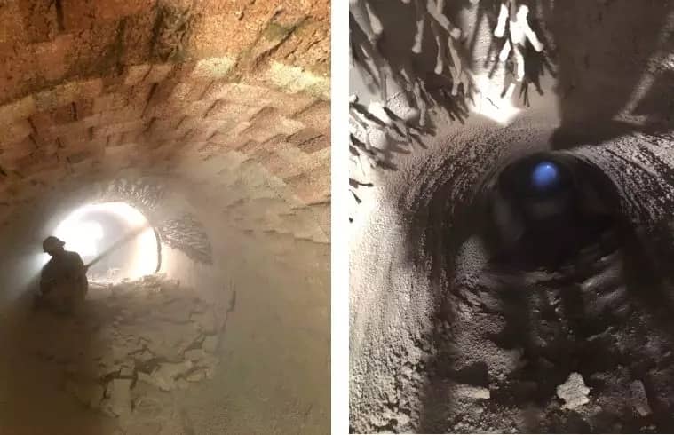 近10年來(lái),經(jīng)過(guò)業(yè)內(nèi)有識(shí)之士的不斷努力,水泥窯內(nèi)耐火磚的檢修方式已經(jīng)由傳統(tǒng)的肩挑背扛、小推車、獨(dú)輪車的粗放式作業(yè)方式發(fā)展到目前的拆磚機(jī)、運(yùn)磚機(jī)、砌磚機(jī)聯(lián)合作業(yè)的機(jī)械化作業(yè)模式,取得了巨大的進(jìn)步。然而,不定型耐火材料(這里特指澆注料)的檢修施工依然是老大難的問(wèn)題,特別是每到檢修旺季問(wèn)題就更突出:現(xiàn)場(chǎng)施工招工難、有經(jīng)驗(yàn)的師傅越來(lái)越少、復(fù)雜的施工部位工期緩慢、施工后養(yǎng)護(hù)時(shí)間長(zhǎng)、安全隱患大大增加、施工質(zhì)量的管控難度越來(lái)越大。然而在廣西崇左紅獅檢修現(xiàn)場(chǎng),我們卻看到了這一幕: