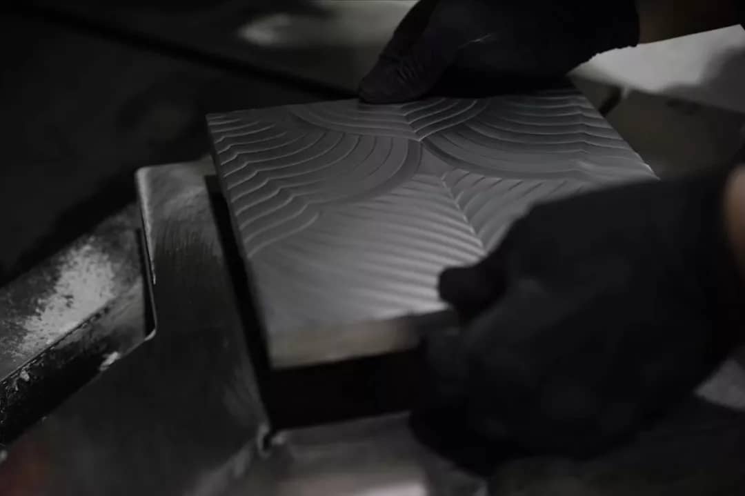 設(shè)計上?,F(xiàn)場將正式展示NAOO1O款的水泥立體花磚拼貼效果,以僧袍的色彩——橘紅為主色應(yīng)用。蔣晟的日常工作是為佛造型,他以建筑的視角思考水泥立體花磚的設(shè)計,將佛像的元素抽象、簡化,為水泥花磚賦予新的美學(xué)。