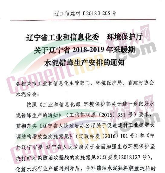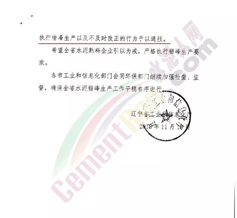 2018年11月10日遼寧省工信廳曾對大鷹水泥等企業(yè)未落實錯峰生產(chǎn)相關(guān)要求企業(yè)做出公開通報,通報原文如下: