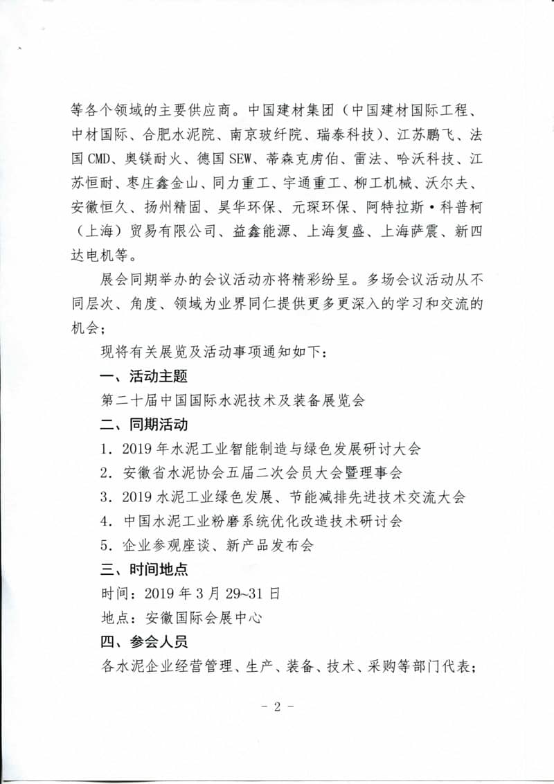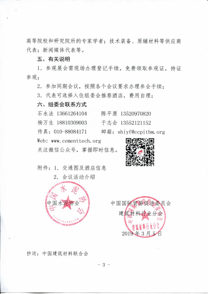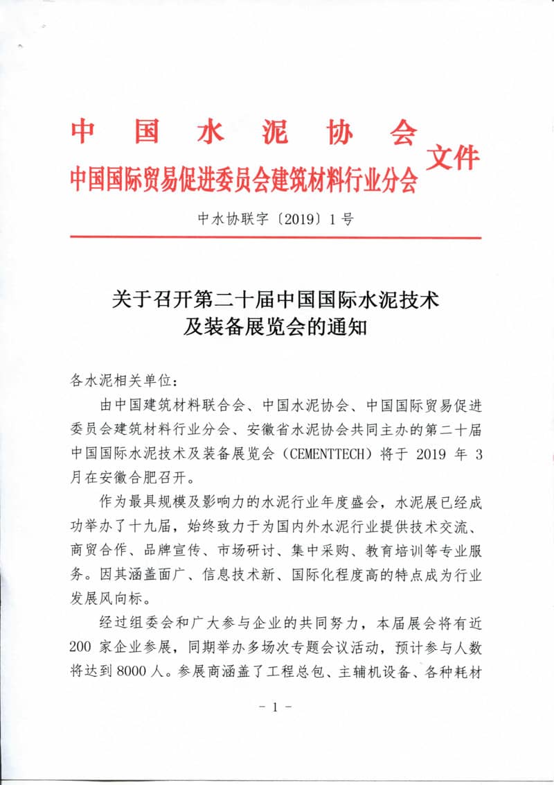 水泥人網(wǎng)消息:日前,中國水泥協(xié)會,中國國際貿(mào)易促進(jìn)委員會建筑材料行業(yè)分會聯(lián)合發(fā)布了《關(guān)于召開第二十屆中國國際水泥技術(shù)及裝備展覽會的通知》(中水協(xié)聯(lián)字【2019】1號)。